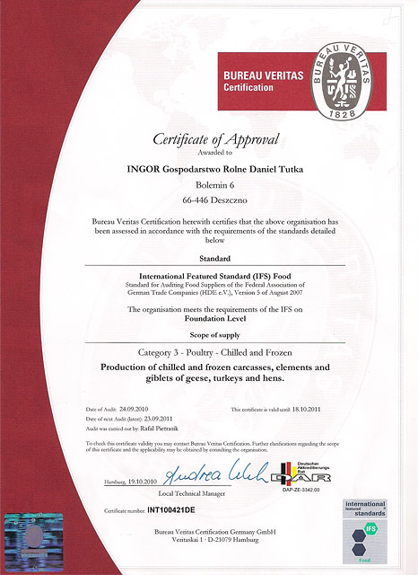 niego zgodnie z naszymi standardami pełnej rozpoznawalności pochodzenia produktu, zachowania dobrostanu